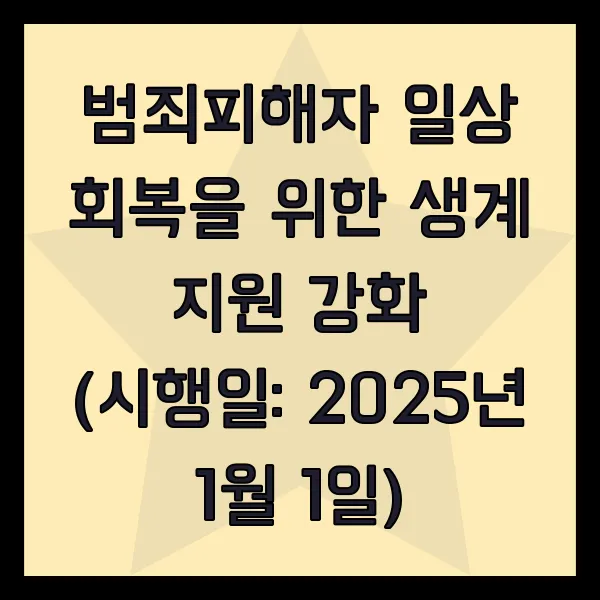 범죄피해자 일상 회복을 위한 생계 지원 강화 (시행일: 2025년 1월 1일)
